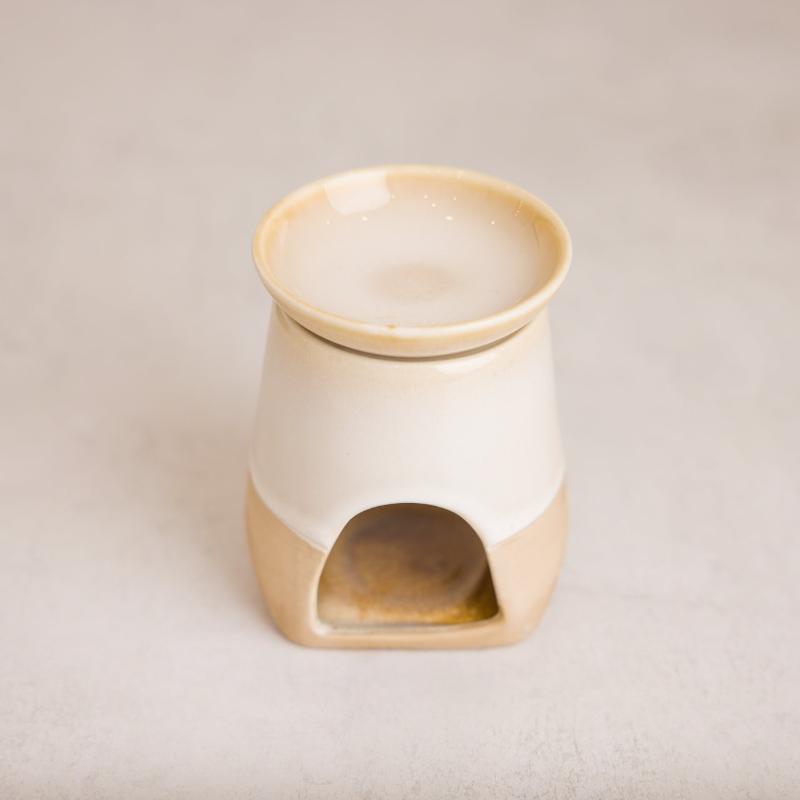 Reactive glaze wax melt burner, with removable dish. Available in Blue, Green, Cream and Taupe.